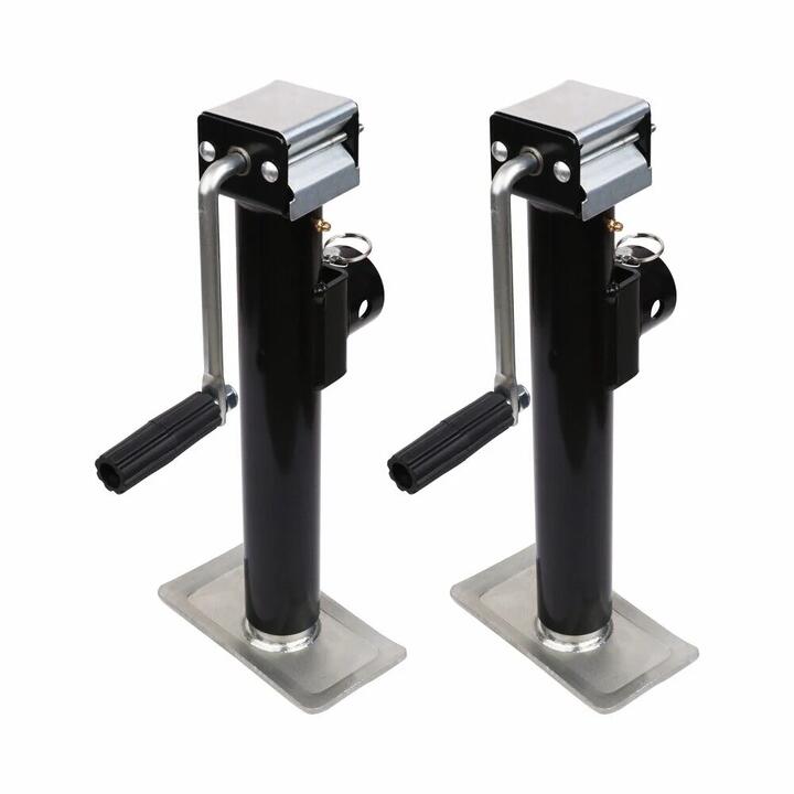 DescriptionThis pipe mount swivel trailer jack features a weight capacity of 5,000 lbs / 2267 kg and a travel of 260mm. With a jack foot plate welded on the bottom, this type of jack also provides added stability for your trailer or caravan on rough terrain. It comes with a side-wind handle.It does not matter what kind of trailer you tow — a boat trailer, utility trailer, livestock hauler or recreational vehicle trailer – if you have a receiver-style trailer, you will want a jack that complements its function.FeaturesLoad capacity: 5000LBS/2267KGTravel: 250mm/10″Closed height: 425mmExtended height: 685mmSurface: black powder coated and galvanizedPackage Includes:2x Jack Stand