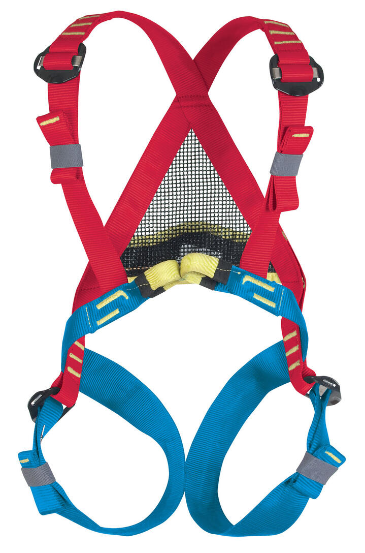A simple and practical harness for growing climbers less than 40 kg in weight. By means of its 2 automatic adjustment buckles on leg loops and on the shoulder straps, BAMBI II adjusts perfectly and easily to all body shapes. A colour code identifying body straps and leg loops helps when putting the harness on. Harness particularly recommended for young children with undefined waists.