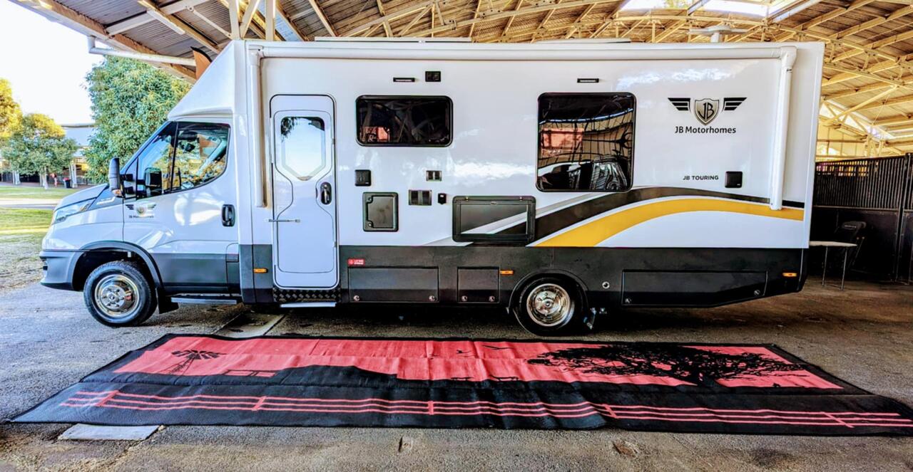 6m x 2.4m Recycled Poly Camping Mat Our Largest Mat for Maximum ComfortDesigned for large setups and vans over 21ft, our 6m x 2.4m recycled poly camping mat is the ultimate solution for those who need ample space and top-tier durability. Perfect for big families or larger outdoor setups, this mat combines functionality, sustainability, and style in one impressive package.Why Its Perfect for Large Setups:Generous Size Lightweight: – Offers an expansive 6m x 2.4m coverage while weighing just 6kg, making it easy to handle and transport.Built to Last: – UV-stabilized material ensures long-lasting durability under the harshest sun. – Reinforced with heat-welded edges, double-stitched bindings, and stainless steel eyelets for secure pegging.Clean Grass-Friendly: – Features over 2500 holes per square meter, allowing sand, dirt, and water to filter through while being gentle on grass. – Non-slip when wet or dry, ensuring safety and convenience at all times.Practical Eco-Friendly: – Comes with a PVC carry bag for effortless storage and transport. – Made from recycled materials, offering a sustainable option without compromising quality.Available in Stylish Designs: Choose from our range of stunning patterns to complement your setup, including: – Alfresco- Diamond- Swish Grey – Caravan Camping – Tropical – Coast – Country Orange- Country GreyMake your outdoor experience comfortable, clean, and stylish with our largest camping mat!Get yours today and enjoy the ultimate in durability, functionality, and style.