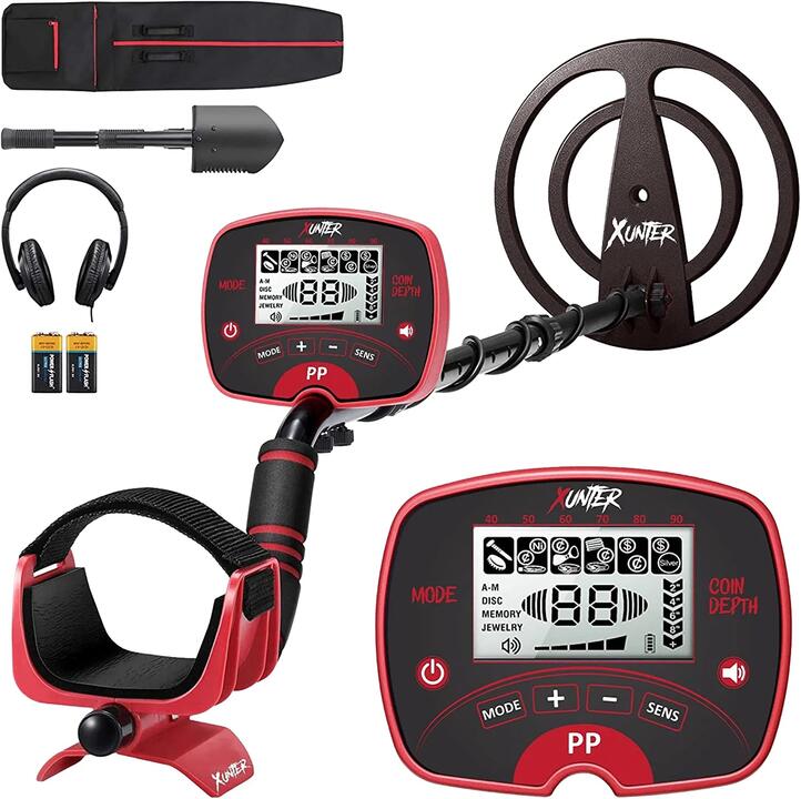 Hunt for hidden treasures!This LCD Display Underground Metal Detector is a digital detector find metal. The gold prospector owns high accuracy and quick response features,making the metal objects directly displayed on the LCD screen. This metal can eliminate unwanted targets to help the user find the wanted metal. It can also set the volume and sensitivity as you request, which is as simple as using a mobile phone.This metal detecting can be a good tool in military use, safety inspection, archeology, treasure hunting, and beach detection. With this powerful and versatile device, you can hunt for coins, relics, jewellery, gold, and silver just about anywhere. The gold detector is versatile and easy to use.Waterproof!Features a waterproof detection coil, giving you the freedom to lower the coil underwater. You can go beneath the surface and quickly uncover your treasure!Plugin your headphones to hear when you’ve struck gold!The built-in headphone jack means you can use it anywhere. In a quiet place, without disturbing the serenity or in loud areas, hear the beeps.Use it anywhere!The Deep Target Waterproof Metal Detector is great for professionals and treasure enthusiasts. Whether an Archaeologist or amateur Relic Hunter, you’ll love this metal detector’s low cost and high effectiveness.Hesitate no more! Start your search, and you could discover a fortune with our highly sensitive backlit LCD Screen Metal Detector and Pinpointer.Metal Detector Features【5 Modes of Operation】 Xunter metal detector has five distinct modes that allow you to search for the desired metals effectively. All METAL MODE, DISC MODE, MEMORY MODE, JEWELRY MODE, PINPOINTER.【10inch Waterproof Search Coil】 Xunter IP68 metal detector can work well in shallow water. Perfect for beach, stream, and during rainy days and find treasures hidden from the eyes of the majority. Metal detectors can be easily cleaned and saved. (Note: the control box is not waterproof)【Upgraded DSP Chip】Upgraded DSP chip metal detector improves search range and sensitivity, exceptionally conducive to detecting efficiency. It’s so powerful it can locate a quarter coin up to 10″ underground. It can find larger objects at even greater depths【Intuitive LCD Display 】Large colour LCD allows you to get the detection dynamics anytime. It’s convenient for you to get the type of metal target, depth, recognition, sensitivity level, operating mode and battery indication. Detecting can be more efficient and time-saving【Ergonomic Design】 Equipped with 43.3″ to 60.2″ adjustable stem that applies to different heights. It has an ergonomic design that involves an adjustable armrest. An anti-slip handle that equips your hunting experience with comfortPinpointer FeaturesSmall size pinpointer makes it ultra-portable and convenientHigh sensitivity for improved detection of small targets can work indoors, outdoors, on the sand, lawn or in soil. Locate coin, silver, jewellery and gold with speed and accuracyThree sensitivity levels with different LED indicators light, audio and vibrate alert 360° side-scan detection areaThe pinpointer is powered by one 9V alkaline battery (not included), with low battery indicationSingle-button operation allows the user to quickly turn out the detection without having to step through multiple sensitivity settingsSpecifications:Metal DetectorUp to 350 MM SensitivityBattery: 2 x 9V batterySensitivity: Min.8 cm (test coin: US ¢50)Coil: 10″ waterproof search coilFrequency: 6.6KHz±0.2KHzPinpointerBattery: 9V standard or rechargeable battery (Not included)Operating Frequency: 11.6kHzSensitivity: 3.5-4cmTuning: Automatic, Without AdjustmentAlert Indicator: LED Light, Audio and VibrationDetection Tip Length: 106mm / 4.17″Control: Power SwitchOperating Temperature: -20~50℃ / -4~122℉In the Box1x Metal detector1x Headphone1x Pinpointer1x Shovel1x Carry Bag2x 9V Batteries1x User manualFor returns due to change of mind, a 20% restocking fee will be applied