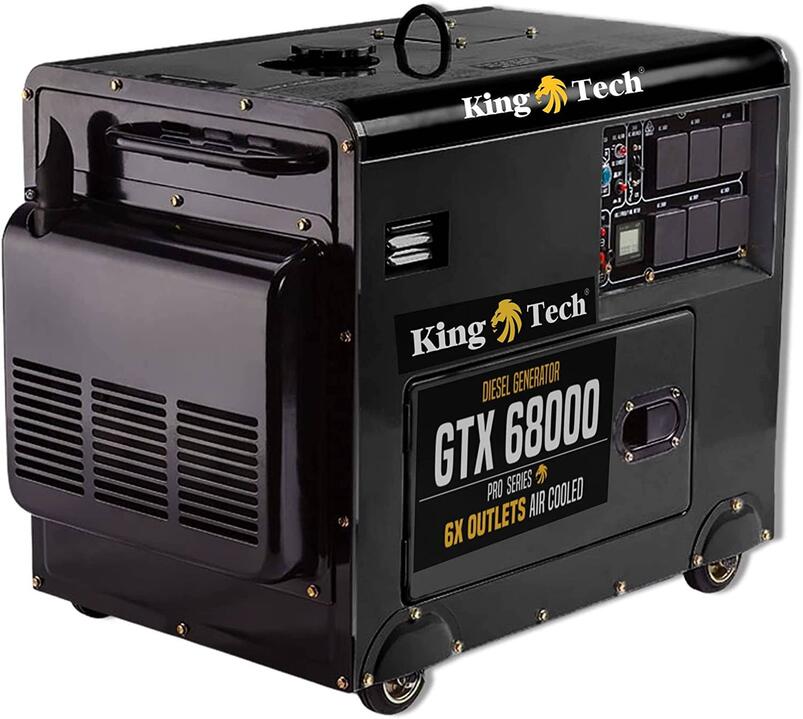 We are delighted you are looking at our Portable Diesel Generator. Please rest assured that Trade Hero Australia stands behind the quality of the Kingtech Portable Diesel Generator.The King Tech GTX 68000 Diesel Generator is the perfect combination of versatility. It gives convenience whether you need power for your home, RV or project. It is ideal for standby or prime power use, where the electricity is unavailable.It features 6x 240V AC outlets, a 12V DC battery-charging outlet, and an 8.3amp 12 volt DC outlet. It could comfortably run a range of tools, white goods and lighting.You can wire this generator into your home or business’s electrical system. Its 15L fuel tank can run unattended for up to 8 hours straight, even when the main power is cut. With its patented super silent enclosure, you will continue powering the house without waking the neighbours.For those of you that are technical, it pays to know that the GTX 68000 requires minimal servicing. It provides easy access to filter, fluid and battery systems, saving you expensive service trips.Rated continuous operation is 4hrs (100% load) 6 hours (50% load). Please refer to the Service Schedule included in the Manual for more information.PLEASE NOTE:’Continuous Rated Output’ is what power this generator consistently and reliably provides.We recommend you consider this figure when determining whether this model suits your requirements.For more information about selecting the right generator, view the Buying Guide.A qualified electrician is required to carry out the termination to your DBNote: Power produced by generators can fluctuate +/- 8%. Do not attempt to connect any sensitive electronic devices without a suitable surge protector.Fail-safe overload / Low oil / Over temp engine protectionExtreme power with a 13HP diesel engineOutputs 6x Single Phase 240V AC + 12V DCReliable single chip digital AVR – automatic voltage regulationSPECIFICATIONS:Max Output: 8400W / 8.4kW / 8.4kWContinuous Rated Output: 6000W / 6kW / 6kWAC Voltage: 240V 50HzDC Output: 12V – 8.3AAlternator Type: Permanent brush magnet***A qualified electrician is required to carry out the termination to your DBENGINE:Type: Single-cylinder, 4-stroke, air-cooled, direct injection dieselEngine Oil Type: 10W-30 / 10W-40 / 15W-30 / 15W-40 non-synthetic engine oil (not included with purchase)Displacement: 460ccEngine Output: 13hp/ 3600rpmCompression Ratio: 19:1Fuel Consumption: 280 (g/kWh)Fuel: Commercially available dieselFuel Tank Capacity: 15LRated Continuous Operation: 4hrs (100% load) 6 hours (50% load)Oil Capacity: 1.65LNoise Level at 7m: 74dbEnclosure: Super silent typeWeight: 160 kg***Fuels must be qualified and commercially availableIN THE BOX1 – Diesel Generator2 – Electric Start Keys1 – ToolkitA diesel generator is a beneficial machine that produces electricity by burning diesel fuel. This machine is practical in rural areas as you can use this as backup power. You can use this not-so-small but portable generator in residential, commercial, large ships, etc.It can provide sufficient power when a power grid goes down. It can be used as an uninterrupted power supply. The most range of diesel generators does this, but our generator is the best quality and inexpensive. We also ship Australia-wide, anywhere you are in Australia.Our generator has a wide range of use, from hospitals to ships require this power supply. A portable diesel generator runs quietly as 74db at 7m and has many benefits.You can use this everywhere for multiple reasons, in-home, camping, businesses, construction sites, etc., whether you need a power supply in a remote location with no electricity or backup. You can count on Kingtech Portable Diesel Generator.For returns due to change of mind, a 20% restocking fee will be applied