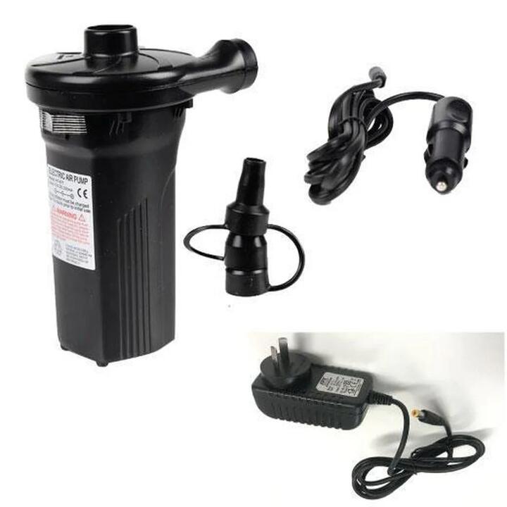 Fully rechargeable and comes with both and Australian AC Electric Plug and a Car Lighter Plug. Used to Inflate or Deflate Airbeds, Mattresses, Pools, etc.As part of our range of electric Air Pumps comes this RechargeableElectric AC DC Air Pump.AC means that it comes with an Australian AU Plug that you can plug into the wall for home use and it also comes with a DC Plug that you can plug into the car lighter. So you can use it both at home or in the car.It’s perfect to use anywhere in outdoor use as you can recharge it and carry it away with you…FeaturesIt’s multifunctional and can be used for both inflating and deflating.It can be used for vacuum compression bags suction pump, inflatable swimming pool, inflatable beds , inflatable pools, inflatable boats, inflatable sofa, inflatable bath tub, water bed, inflatable toys, inflatable swim ring etcEquipped with 3 different sized nozzlesIncludes both plugs for home or car useSpecificationsModel No: HS-218AC DC electric air pumpVoltage: AC 110-240V / DC 12VPower: 50WCertified: CE ROHS C-TICK ,ISO9000,Airflow: 275 L/minPressure: 0.50psiMaterial: ABS Air Transport UN 3481