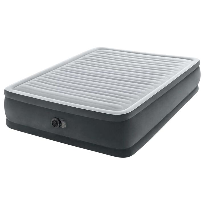 Atop the Dura-Beam Deluxe Elevated Air Mattress, its a blissful night of sleep every time! Feel the unmatched stability of Fiber-Tech interior construction and indulge in the smooth sleeping surface provided by the dual-layer comfort top. With its distinctive edge and bottom ring construction, this mattress guarantees superior stability for a peaceful slumber, night after night!Key Features:Built with Advanced Fiber-Tech technologyDual-layer comfort top provides a smooth sleeping surfaceUnique edge and bottom ring construction provide superior stabilityMattress is raised 46cm from the floor for conveniencePowerful internal pump for rapid inflation and deflationSpecifications/Attributes:Brand: IntexSize: QueenApproximate Inflated Size: 1.52m x 2.03m x 46cmInternal Pump: 220-240VMaterial: PVC, PP, ABS, PET and RayonPackage Includes:1 x Air Mattress