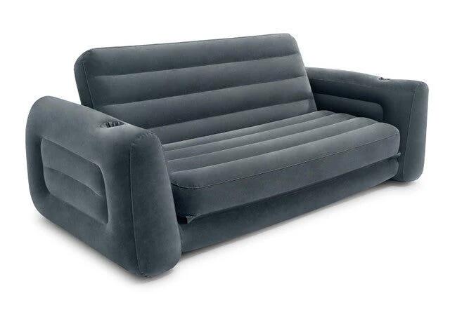 A versatile sofa that offers an affordable and comfortable sleeping solution for any home. Quick and easy to inflate, this sofa conveniently pulls out into a queen size bed and sleeps two people. Its portability makes it ideal to take on the road. The velvety soft surface provides added comfort, perfect for sitting or sleeping. Grey velvety surface Includes 2-in-1 valve has extra-wide openings for fast inflating and deflating 3 quick inflation and deflation valves Comfortable backrest and armrest Folds compactly for storage 2 cup holders Approximate inflated size: 203cm (w) x 203cm (L) x 66cm (H)BrandIntexSKU66552ModelSofaUPC6941057417431Dimensions20 x 45 x 40cmWeight8.22kg