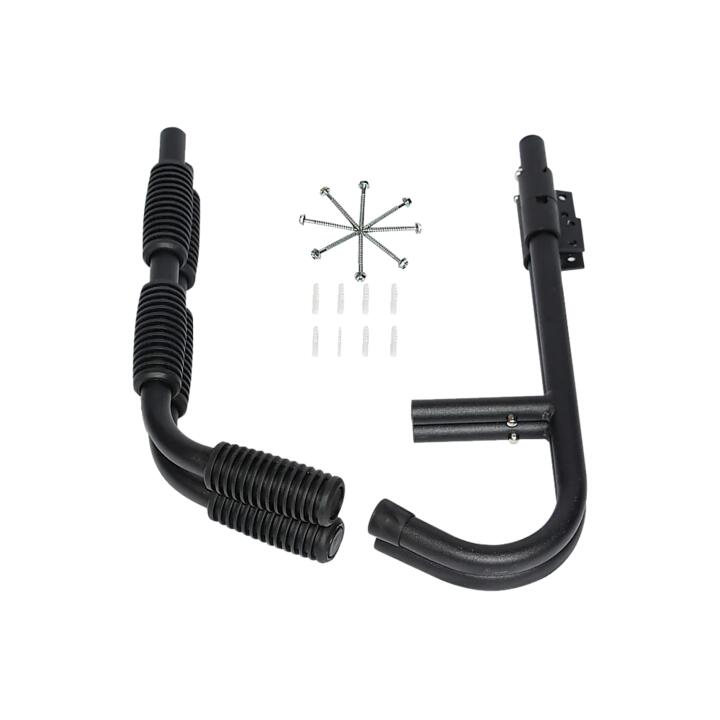Features:Space-saving:The lifting frame can be rotated 90 degrees, so items will block the way when not in use. After being easily folded, you can even remove the extended arm. Help you save garage space.Sturdy metal parts:Our metal parts are very strong. Unlike other products, they are plastic parts that are prone to breakage. The screw holes are installed on a straight line. So the kayak frame has a side bracket, which measures 0.78 inches wide by 1.38 inches long. It can be installed on a wall with a minimum width of 2 cm. (0.8 inch)Material and Capacity:It adopts heavy steel pipe structure and black rubber cover bracket. Exclusive multi-level anti-rust process. It can hold up to 100 pounds (approximately 45.4 kg).Storing kayaks and paddles:The upper bracket arm helps you safely store most sizes of kayaks. The lower hook provides more storage space for paddles or hanging other accessories.Spring button design:F tube and L tube are connected by a solid spring button. The hook joint is welded and has good load-bearing performance.Note: Canoe / Oars not includedNote: COM (change of mind) Return Policy: The product must be unopened and in brand new condition, with the return to be organised by the customer. Once received and verified to be in the condition specified, refund is only of the item value minus 15% restocking fee (not including initial shipping). An additional return charge, which is same cost as that of initial shipping, will be deducted from the refund on returns due to delivery failure caused by customer error. For the health and safety of our staff and other customers, we are unable to accept returns of personal use items.