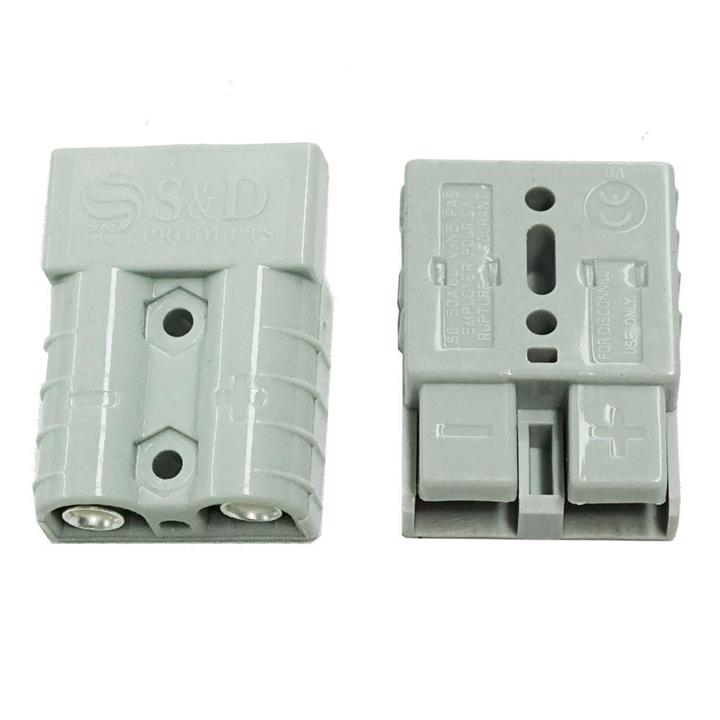 Features Brand new and high quality The plugs is impact resistant polycarbonate and connectors are silver plated solid copper terminals Ideal for environments where a durable, rugged connector, capable of low voltage, high current applications from 1-36 volts up to 50 Amps is required The silver plated solid copper terminals offer low resistance for superior conductivity, as silver plated copper contacts inside housings that strongly force the contacts together Suitable for solar panels, dual battery systems, caravans, 4WD, fridges etc These plugs form a reliable weather and vibration resistant connection, can not be cross connected, and are most commonly used to connect auxiliary power from a vehicle to a trailer Plugs are compatible with other grey Anderson Style 50A connectors Specifications Current Rating: 50Amp Voltage Rating: 600 volts (max) Contact Barrel Wire Size: #6 (AWG), 13.3(mm?) Voltage: For 12v or 24v use Genderless Connection Colour: Grey Operating Temperature: -20C to 105C Package Content: 2x Anderson Style Plug 4x Anderson Style Terminals