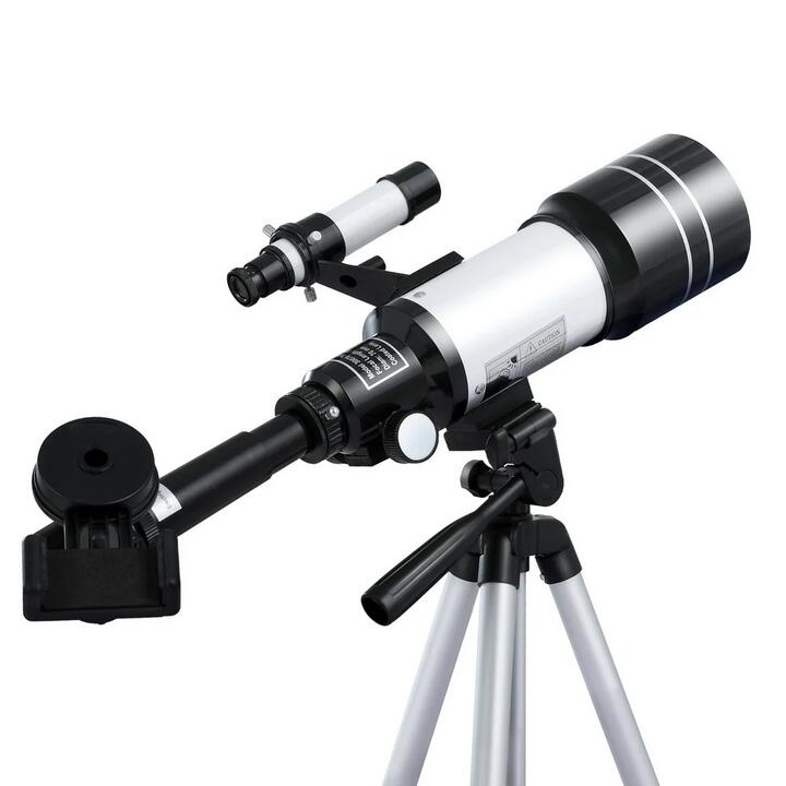 There’s no limit to the wonder you’ll see with our high-definition Astronomical Telescope. The telescope features a 70mm aperture astronomical refractor, allowing for clear and detailed views of celestial objects. With its magnification capabilities and multi-layer broadband green film, you can explore the wonders of the night sky with enhanced clarity and brightness. Designed for convenience, this telescope is easy to assemble and use, making it suitable for kids, adults, and beginners alike. Its portable design, complete with a backpack, allows for easy transportation and outdoor adventures. Additionally, the adjustable tripod ensures comfortable viewing positions, while the included smartphone adapter enables you to capture and share your astronomical discoveries effortlessly. Explore the night sky with your very own Astronomical Telescope.Features70mm aperture astronomical refractor15-150X MagnificationMulti-layer broadband green filmInclude replaceable eyepieceEasy to assembly and usePortable with backpackSuitable for kids, adults, beginnerAdjustable tripod for viewingCome with a smartphone adapterSpecifications:Optical system : RefractionEyepiece : 6mm/12mm/20mm Magnification mirror : 3 timesMultiply power : 15X-150XFinderscope : 5x24Zenith mirror : 48 degreeFocal ratio : 4.28Objective lens diameter:70mmEyepiece focal length: 300mmPrism system: BAK7Prism glass: Optical glassTelescope focal length: 3mTripod height: 40cm-120cmTripod maximum load: 3kgPackage ContentAstronomy telescope X1Zenith mirror (90 degree) X1Eyepieces(6mm, 12mm, 20mm) X1Telescope magnifier X1Tripod X1Smartphone adapter X1Telescope finder scope X1Manual X1This product comes with 1 year warranty