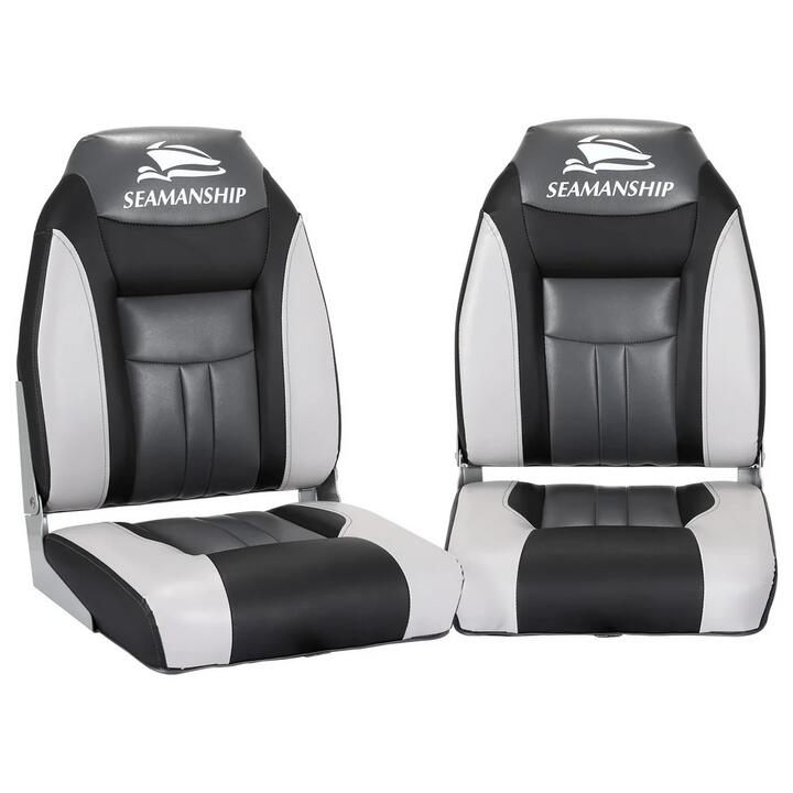 Seamanship 2X Folding Boat Seats Marine Seat Swivel High Back 12cm Padding Black