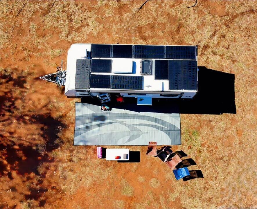 3m x 1.8m Recycled Poly Camping MatDesigned for versatility and convenience, our 3m x 1.8m recycled poly mat is the perfect choice for smaller camping setups and outdoor adventures. Lightweight yet durable, this mat offers a practical solution for campers and explorers who value functionality without compromise.Why Its Perfect for You:Versatile Use: – Ideal for rooftop tent campers, tent setups, swags, and camper vans. – Doubles as a beach mat or picnic blanket, offering comfort and style wherever you go.Lightweight Travel-Friendly: – Weighs just 2kg, making it easy to transport and store. – Comes with stainless steel eyelets for secure setup and a carry bag for added convenience.Effortless Clean-Up: – Sand and dirt filter right through, keeping the surface clean and comfortable.Stylish Designs: Available in all our stunning designs, so you can match your mat to your outdoor style.Whether you’re setting up camp, relaxing by the ocean, or enjoying a picnic in the park, this mat is your reliable companion.Upgrade your outdoor gear today with a mat that blends practicality, durability, and style!