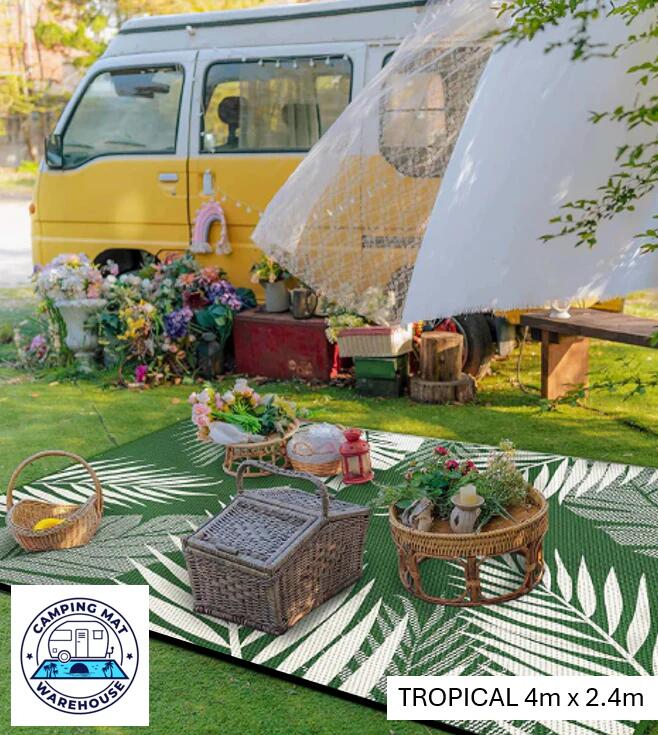 3m x 1.8m Recycled Poly Camping MatDesigned for versatility and convenience, our 3m x 1.8m recycled poly mat is the perfect choice for smaller camping setups and outdoor adventures. Lightweight yet durable, this mat offers a practical solution for campers and explorers who value functionality without compromise.Why Its Perfect for You:Versatile Use: – Ideal for rooftop tent campers, tent setups, swags, and camper vans. – Doubles as a beach mat or picnic blanket, offering comfort and style wherever you go.Lightweight Travel-Friendly: – Weighs just 2kg, making it easy to transport and store. – Comes with stainless steel eyelets for secure setup and a carry bag for added convenience.Effortless Clean-Up: – Sand and dirt filter right through, keeping the surface clean and comfortable.Stylish Designs: Available in all our stunning designs, so you can match your mat to your outdoor style.Whether you’re setting up camp, relaxing by the ocean, or enjoying a picnic in the park, this mat is your reliable companion.Upgrade your outdoor gear today with a mat that blends practicality, durability, and style!